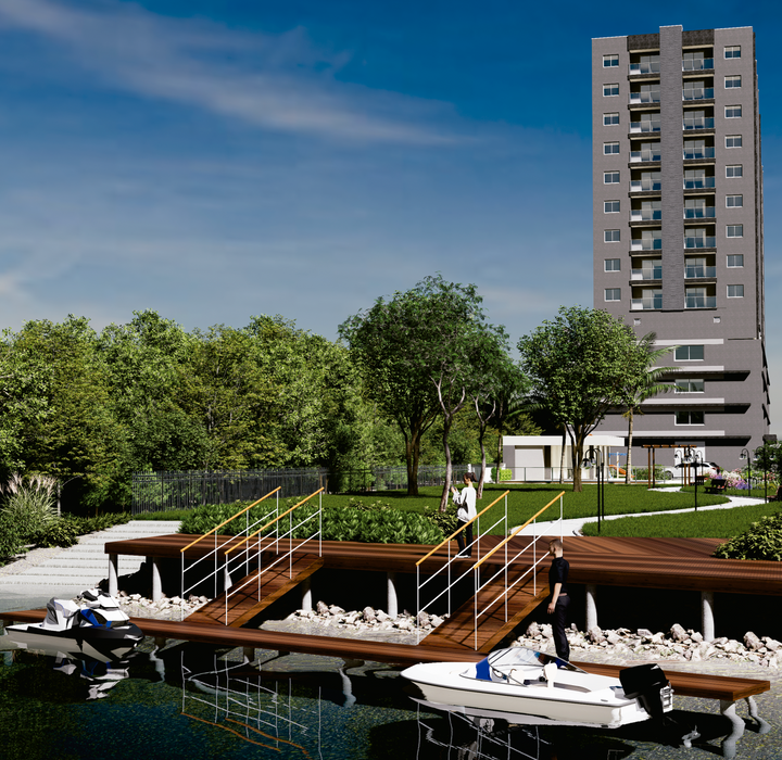 Com um deck privativo de frente para o rio Camboriú, aproveitando tudo o que as cidades de Camboriú e Balneário Camboriú têm a oferecer. O empreendimento está em fase de aprovação, e as reservas são apenas preliminares no momento.